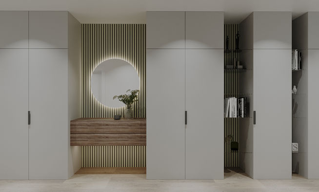 Rodinný dům o rozloze 166 m² s půdorysem do tvaru L, který je důmyslně rozdělen na jedné straně na soukromou část a na druhé straně na hlavní obytný prostor s pracovnou a toaletou. Obývací pokoj s kuchyní má otevřený krov, který prostor zvětšuje a dodává mu osobitý charakter. Dominantou je krb v čele pokoje, vedle něhož vznikl příjemný čtecí koutek s podsvícenou knihovnou. Díky vysokým stropům jsme si mohli dovolit použít velká svítidla Baloon značky Bolia. Kuchyni jsme oproti původnímu návrhu změnili z tvaru U na stranu s varným centrem a ostrůvek se dřezem a velkou pracovní plochou. Vedle lednice je skrytý vstup do spíže. Celým domem prochází dekor terazza, které je použité na dlažbě a v koupelnách. Terazzo je doplněno o dřevo, světle šedou a zelenou barvu.